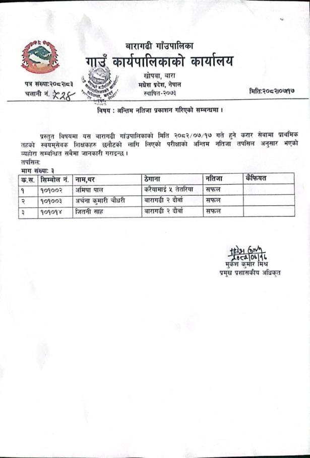 अन्तिम नतिजा प्रकाशन गरिएको सम्न्बन्धमा ।