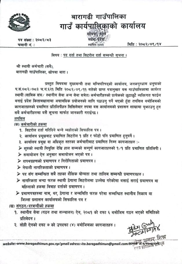 पद दर्ता तथा सिटरोल दर्ता सम्बन्धी सूचना ।