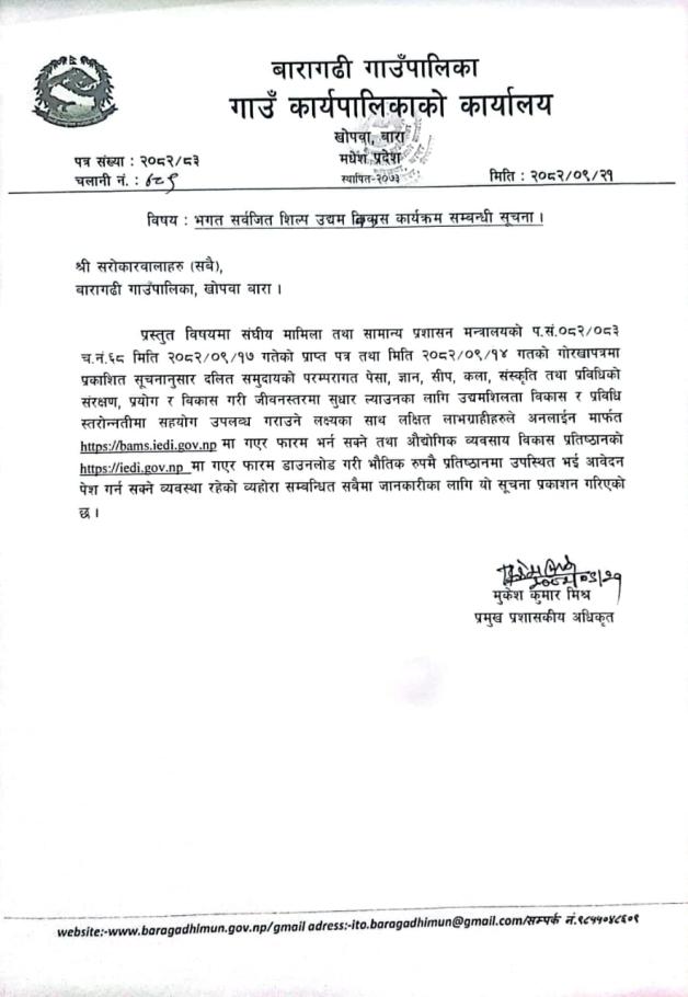» भगत सर्वजित शिल्प उधम बिकास कार्यक्रम सम्बन्धी सूचना ।
