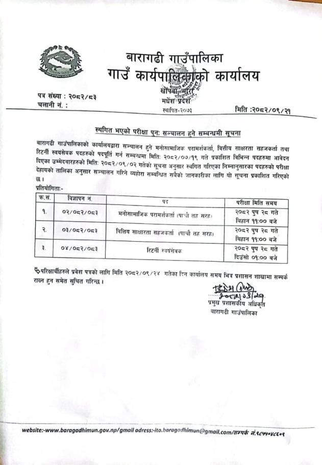 स्थगित भएको परीक्षा पुन: सन्चालन हुने सम्बन्धी सुचना