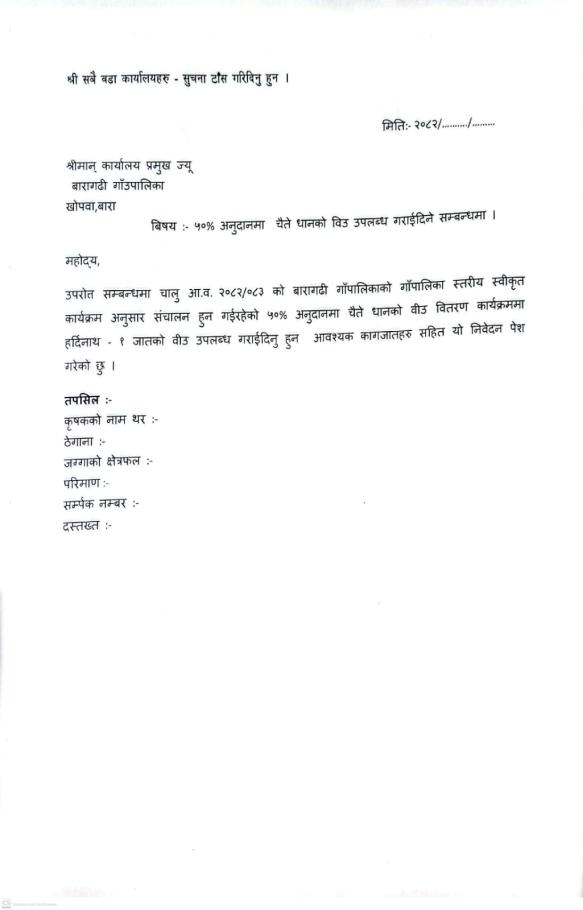 ५०% अनुदानमा चैते धानको विउ सम्बन्धि सूचना