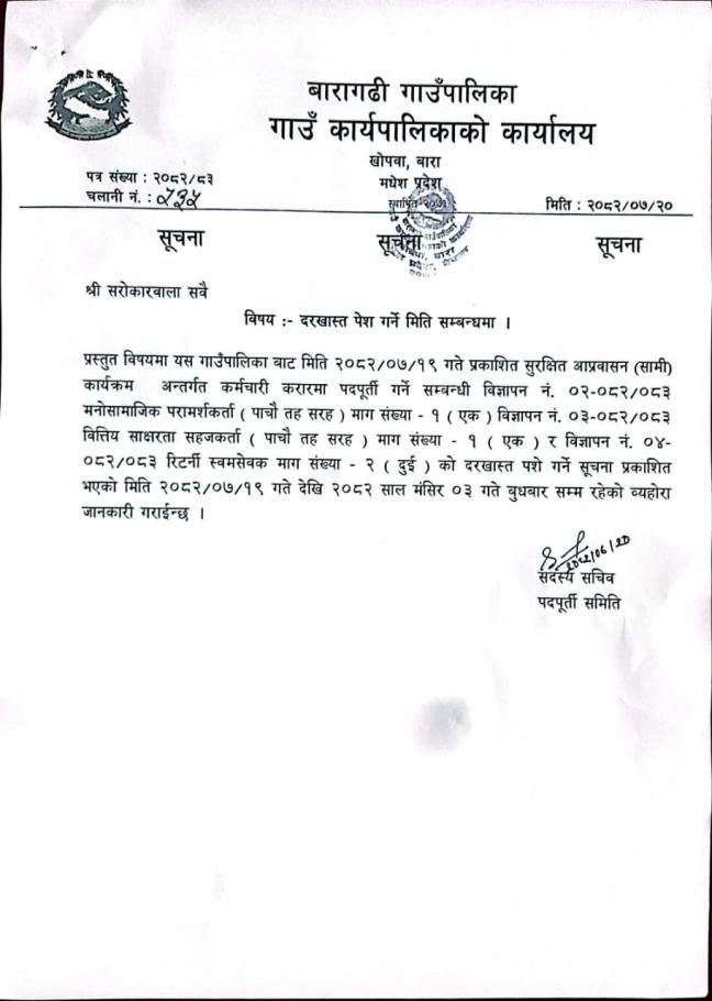 दरखास्त पेश गर्ने मिति सम्बन्धमा ।