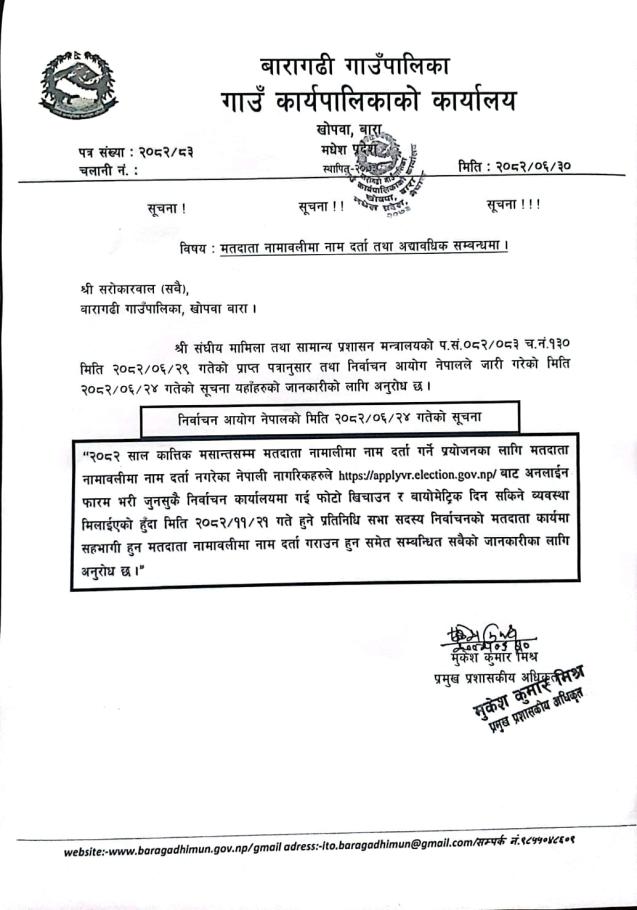 मतदाता नामावलीमा नाम दर्ता तथा अद्यावधिक गर्ने सूचना प्रवाह सम्बन्धमा ।