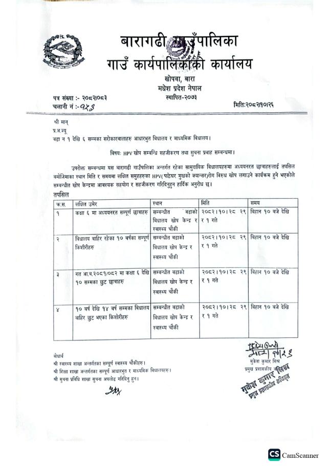 » HPV खोप सम्बन्धि सहजीकरण तथा सुचना प्रवाह सम्बन्धमा ।